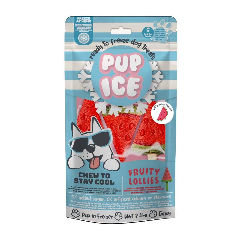 Pup Ice Fruity Lollies med vandmelonsmag. Sjove frysbare hundesnacks, der ligner rigtige ispinde. Kommes i fryseren og er klar efter 3 timer. Ideel til at hjælpe med at nedkøle hunden på varme dage.