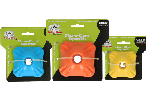 Jolly Pets Flex-n-Chew Bobble - et massivt giftfrit aktivitetslegetøj produceret i TPE.