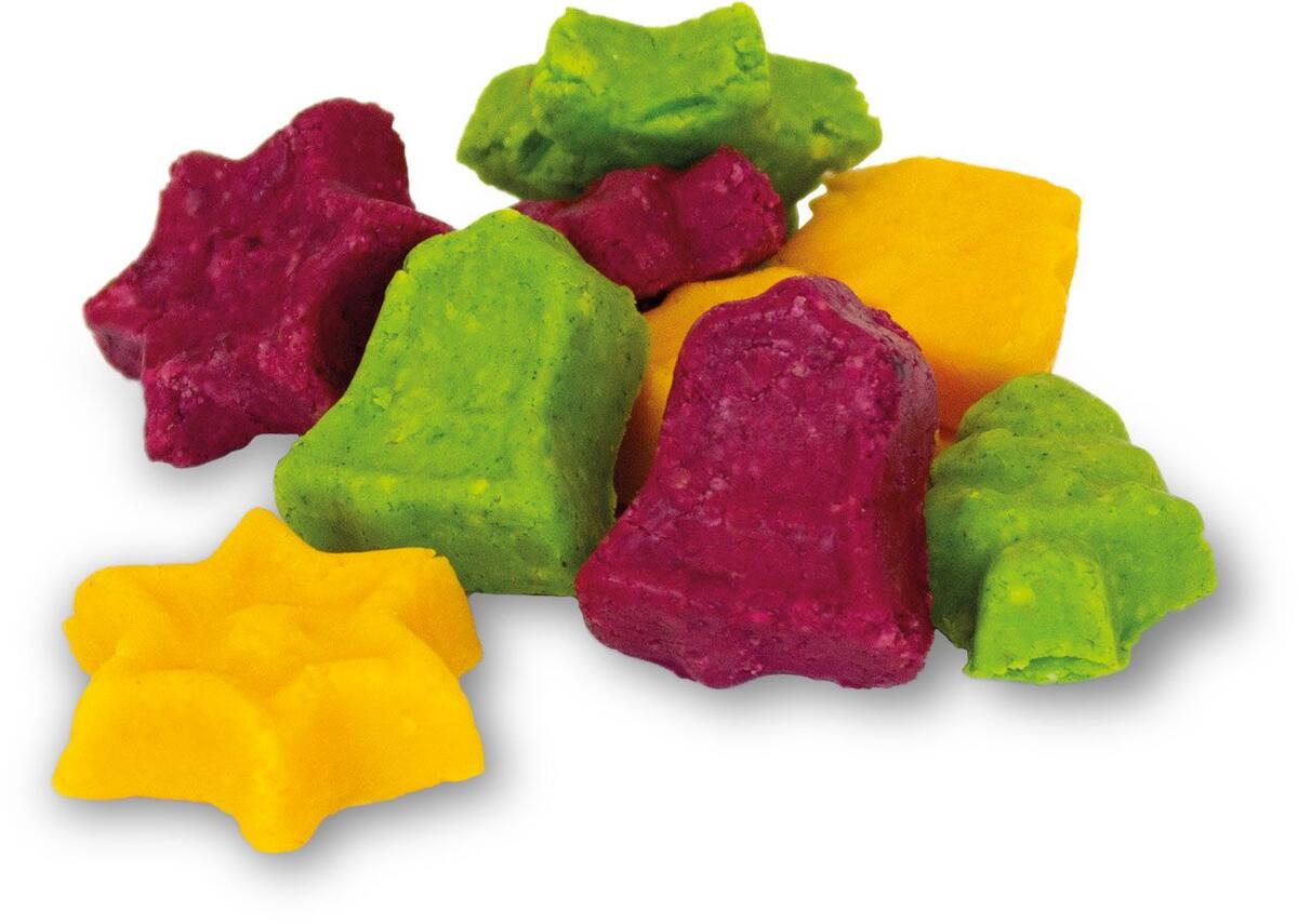 Bidderne er formet i julens figurer, og de er selvfølgelig sukkerfrie.