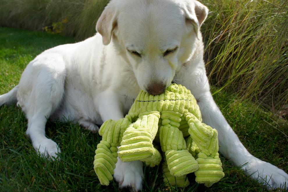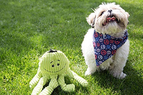 Octopus har en pivepude i hver "arm". I kroppen er der en større squeaker med en mere hyggelig lyd.