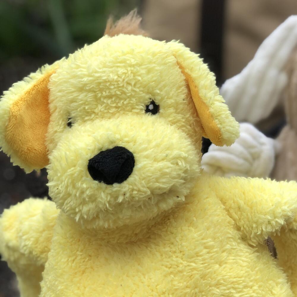 En sød og glad hund ved navn Roxie. Fremstillet i lækkert blødt gult plys.
