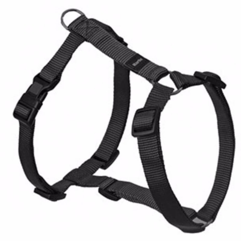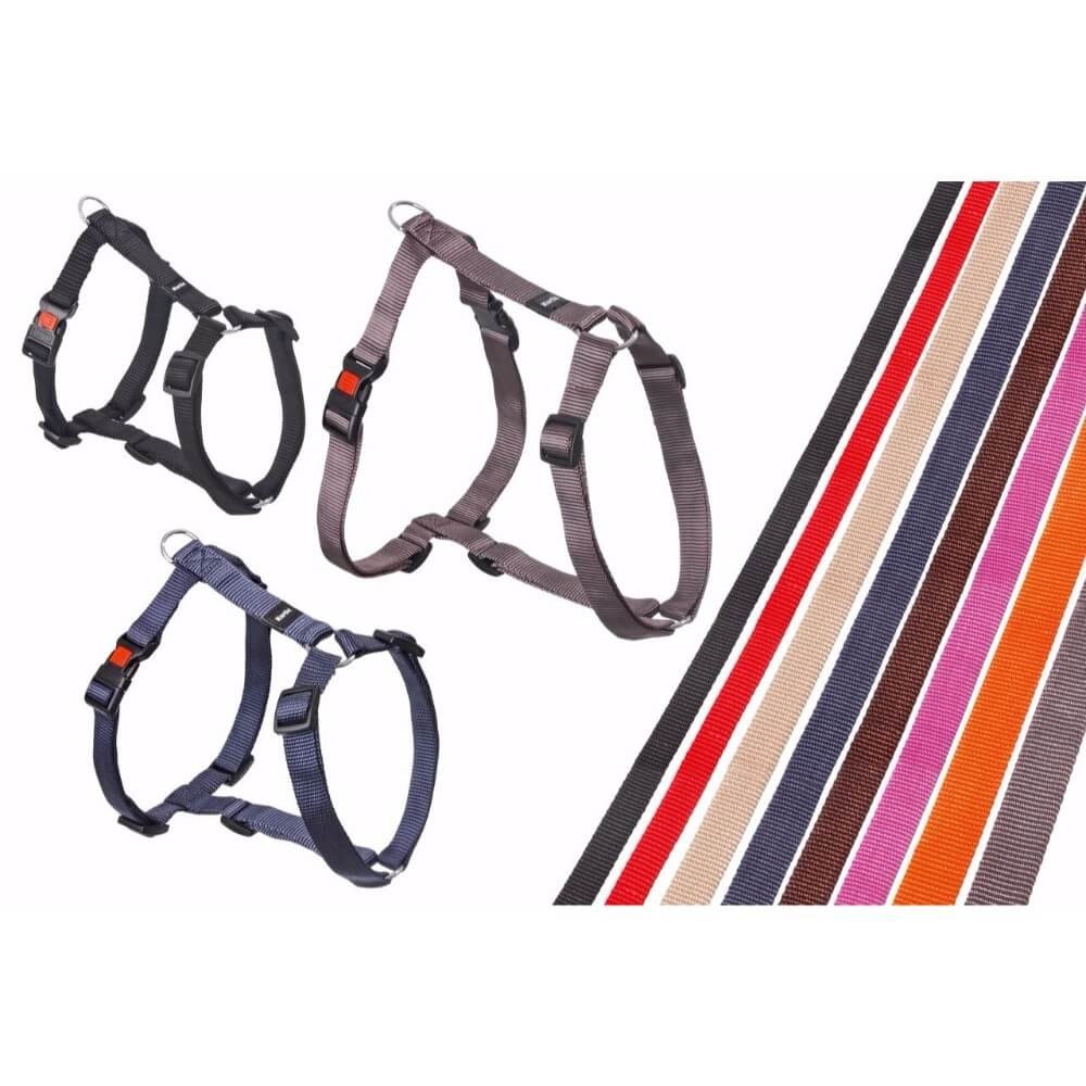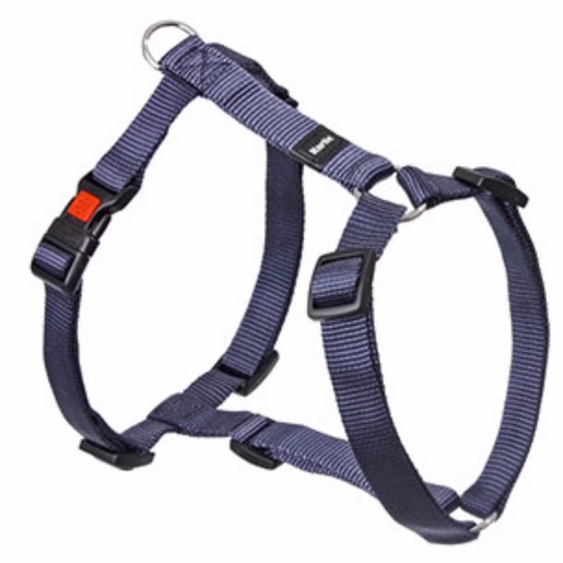 Trinløs justerbar sele i stabilt nylonmateriale med sikkerheds klik-lås. På grund af selens justeringsmuligheder kan selen tilpasses hunden optimalt.